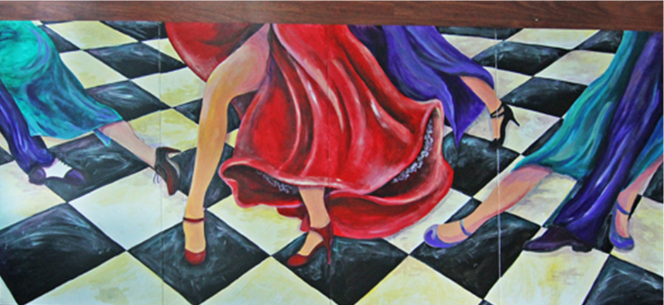 (Bottom) Tango dance floor - Acrylic on wood cupboard 72"x27.2"